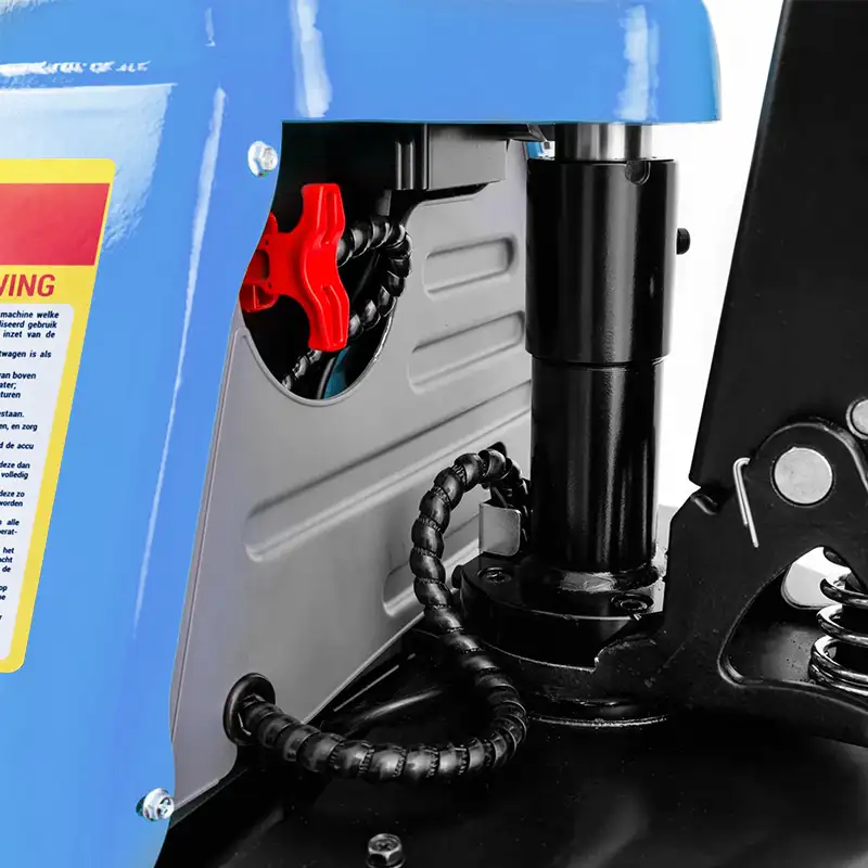 De TPT20L is uiteraard ontworpen voor veilig gebruik. Zo wordt de rijfunctie pas geactiveerd wanneer u de dissel naar u toe heeft gehaald, dit voorkomt dat uw voet onder de pallettruck komt bij het naar achteren rijden. De palletwagen is uitgerust met een noodstop en een buikknop (dodemansknop). Wanneer de pallettruck stil staat, zorgt de elektromagnetische rem ervoor dat de machine op de gewenste plek blijft staan.