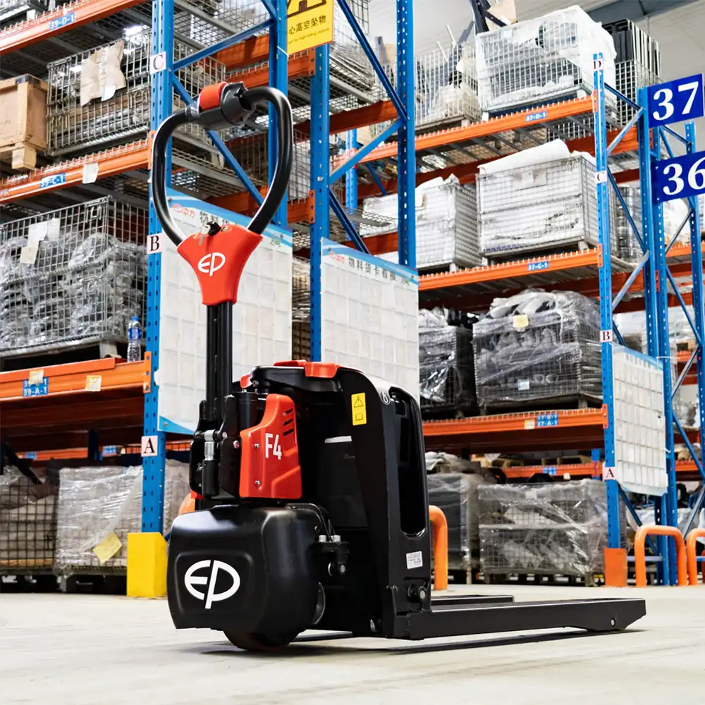 De F4 elektrische palletwagen van EP Equipment is compact, volledig elektrisch en eenvoudig in gebruik. Deze pompwagen is zeer geschikt voor het dagelijks verplaatsen van pallets. Dankzij de lithium-ion accu is de pallettruck onderhoudsvrij en tussentijds opladen geen probleem.