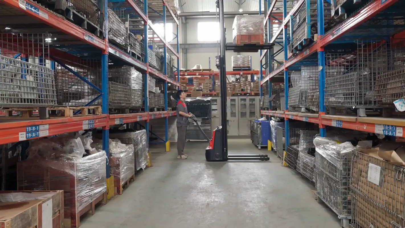 De EP ESA121 is een compacte en gebruiksvriendelijke elektrische meeloopstapelaar met een hefvermogen van 1200 kg en een hefhoogte tot 4150 mm. Dankzij de onderhoudsvrije AGM-batterij met ingebouwde lader is hij altijd klaar voor gebruik. Perfect voor efficiënt intern transport en het plaatsen van pallets in stellingen, zelfs in kleinere ruimtes.