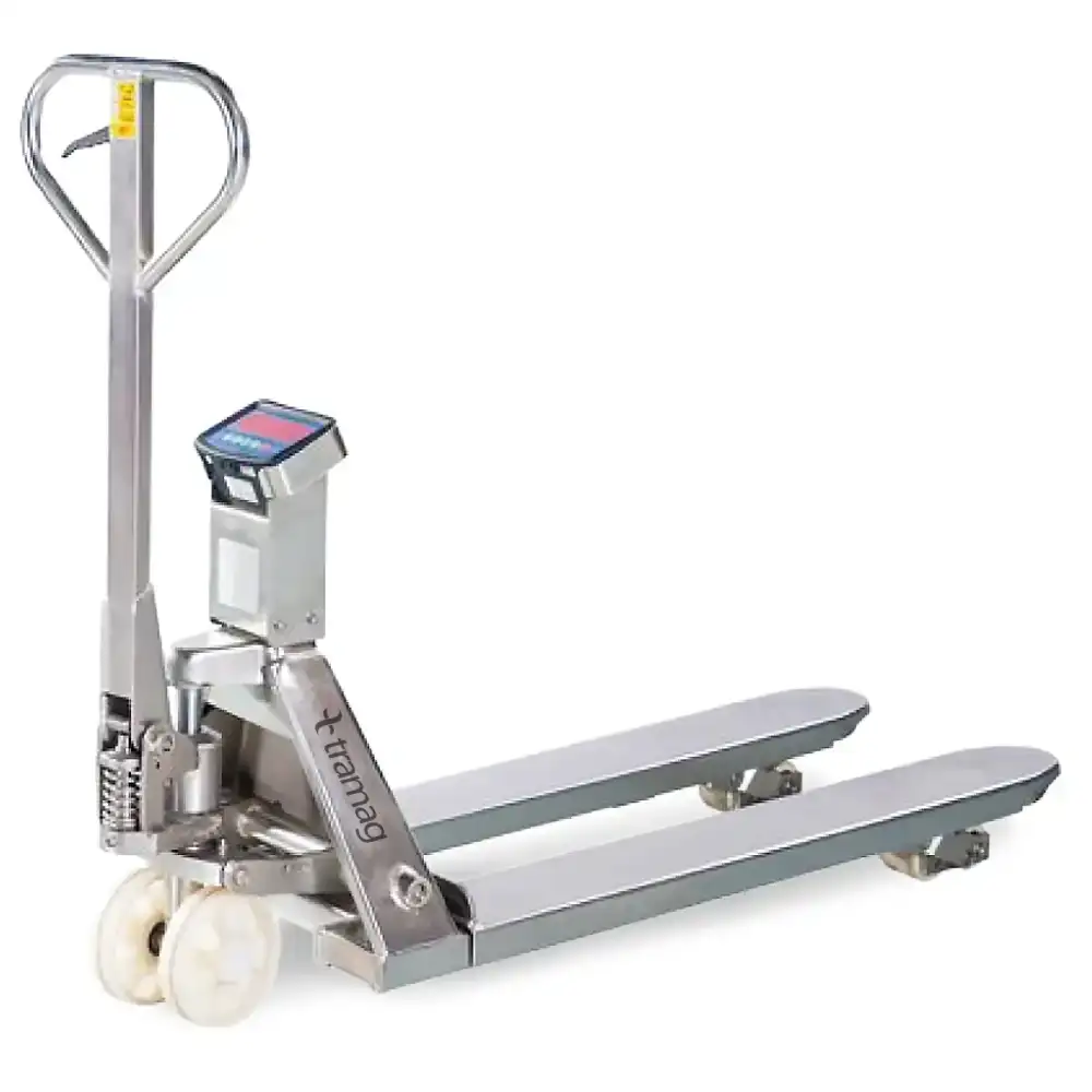 - Dankzij het roestvrijstalen chassis is de palletwagen geschikt voor de chemische en de voedingsindustrie.