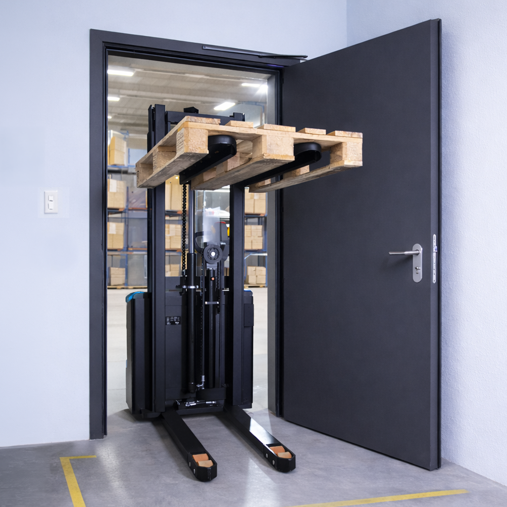- Dankzij de compacte bouw en kleine draaicirkel is de stapelaar prima te gebruiken in smalle gangpaden.